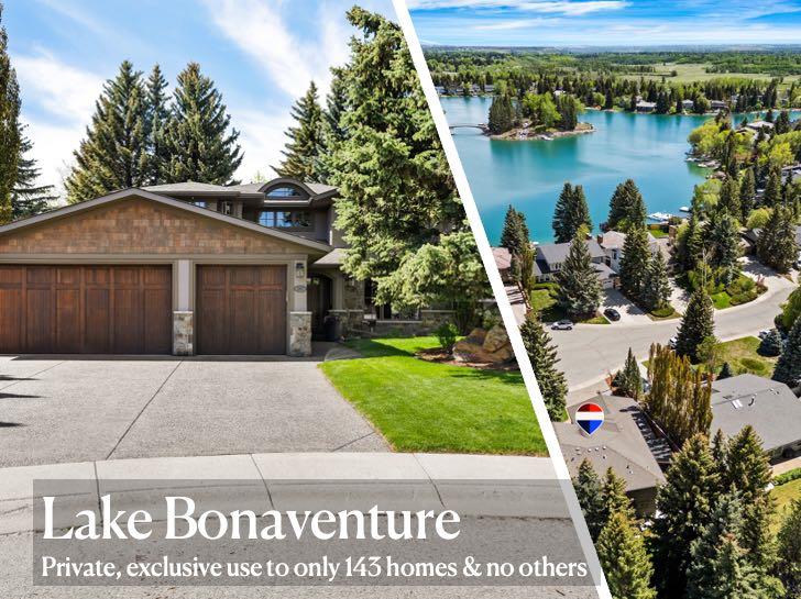 *Check out the video* This may arguably be one of the finest Lake Bonaventure lake access properties that has ever publicly come to market. Welcome to Lake Bonaventure, still one of Calgary’s best kept secrets. This privately owned lake offers its use to only 143 homes & no others. Ownership on this lake is one of the most rare & coveted residential opportunities in Calgary. This home offers you a once in a lifetime opportunity to secure what is without a doubt one of the most renovated lake access homes that has been offered to market. At nearly 3000 sq.ft above grade (near 4300 total), the transformation of this home is substantial. Completed by Rock Creek Builders & truly “right down to the studs”, this is executive designed & optimized for family living. Walk into the gorgeous entrance & you will take a breath as you start to take it all in. Formal office at the front makes for an ideal work-from-home option. Large formal dining area walks-out to an enclosed outdoor area, which can act as an area to entertain or as an outdoor family room in summer. You’ll fall in love with this kitchen. Huge island with built in eating area, premium appliances & loads of smart storage solutions. Beautiful living room with stone fireplace overlooks the backyard. 4 bedrooms up, the primary featuring a dream ensuite & adjoining closet. Second bedroom with its own ensuite as well, huge family bathroom & convenient upper laundry. The basement has something for everyone. Large family room, rec room, flex area’s for crafts or a home gym, and loads of storage space. Control4 automation throughout. Triple garage with extended mudroom space in the garage that flows seamlessly into the interior mudroom. The exterior of this home was also overhauled. Stucco, stone, soffits, fascia, eves, windows, professional landscaping & more. This pie shaped lot puts the majority of the space where you want it – in the west facing yard that is 113’ wide. The yard is incredible. It features a putting green, covered outdoor sitting area, a bunk house for sleepovers, garden shed & loads of space for your children to play. Walk out your yard & your footsteps to the shared dock. Launch your boat, or cast a fishing line. The lake is restocked every year with trout. Head out to the private island to enjoy a picnic, waterfalls & scenic vistas. In the winter, rinks are shovelled out for hockey & a path around the lake for skating. This is like living in an inner city home & cottage. From the quality of the water, the upkeep of the island & the stunning homes that surround it, this is an inner city jewel with a limited number of opportunities to live here. The environment on Lake Bonaventure is pristine & proudly managed. As a bonus, your sidewalk is shovelled as a part of your HOA fee. You also get lake privileges for Lake Bonavista, the lake that’s shared by all community residents. “Once in a lifetime opportunity” is a phrase that is often said, but seldom realized. You’ve found it on here Lake Bonaventure.